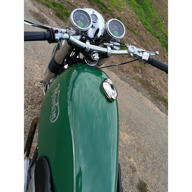 Nous sommes dans les premières version avec le carter primaire spécifique, les pots Atlas, allumage derrière le cylindre, prise de compte tour sur le carter distribution.
