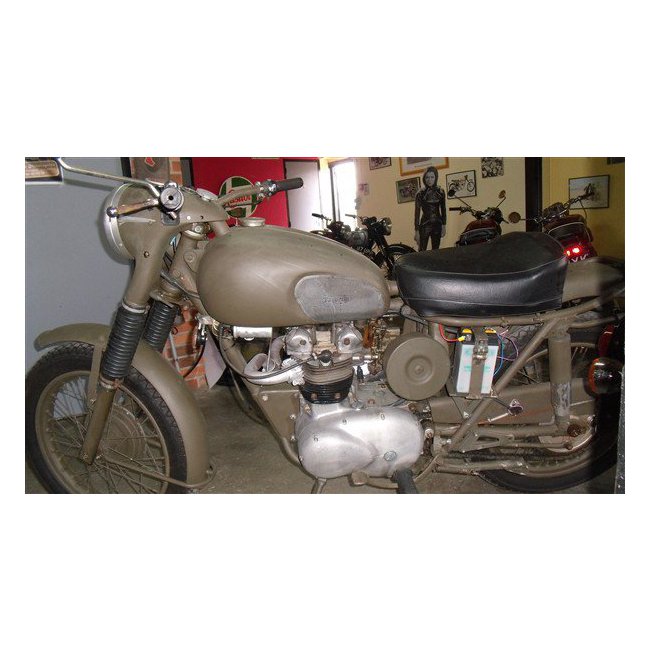 Machine militaire avec le cahier des charges qui s'impose, on peu rentrer dans l'eau jusqu'a 85 cm ce qui explique le carburateur solex et la prise d'air sous le capotage de phare (le conduit passe dans le réservoir), elles sont sobres, costaudes, braves, faites pour des chics types qui veulent une utilitaire, l'occasion de bien se marrer en voyant des Steeve Mac Queen réplica avec le blouson vendu avec , le poster dédicacé et tout le Bazard......La 3 TA, c'est pas un foudre de guerre, mais elle tient sa place comme une machine polyvalente avec laquelle tu peux faire du chemin, légère, confortable, une bonne machine abordable et robuste avec la bonne gueule Triumph (capotage de phare, ligne harmonieuse), le coté brut lui donne un certain charisme , moto que tu poses contre un mur et qui te regarde en te disant "je t'attends...", par contre, on a pas encore sauté une rangée de barbelés avec, mais ça va venir, on s'entraine, le rêve à pas chère