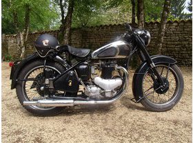 Sympathique moto avec son cadre coulissant dans un très bon jus, polyvalente avec beaucoup de charme, le moteur est un première génération, identique aux BSA cadre rigide.