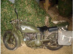 Authentique Matchless G3L Militaire 2 em guerre mondiale, stock dans un bon état avec ses sacoches son feu "black out", lors de l'essai routier, la machine se montre performante et nerveuse, le GI s devait ramer un peu au guidon de son Harley ou Indian pour suivre ce culbuté Anglais.