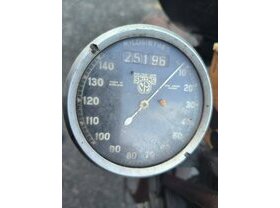 Sans doute repeinte en civil après-guerre, la moto présente une patine magnifique.