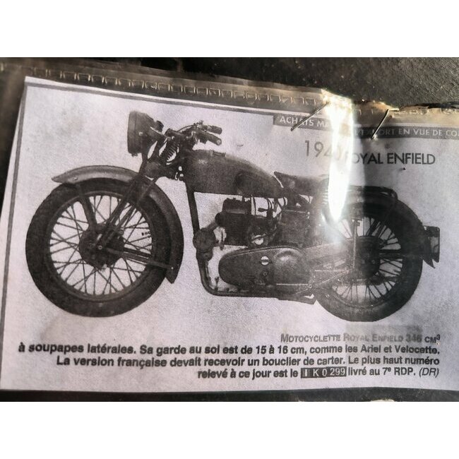 Royal Enfield WDC La WD/C version à soupapes latérales en 346 cm3 produite de 1939 à 1942 plus rare que la WDCO moteur culbuté, jusqu’à la fin de la guerre elle équipait la Brtitish Army et aussi la Royal Air Force.