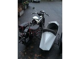 L’installation d’un magnifique et rare SIDE car Imperial entièrement restaurée avec changement de démultiplication de la couronne arrière (la couronne d’origine est présente), permet au brave et valeureux moteur d’emmener le tout à la vitesse insoutenable de 60/65 km/h sur le plat.